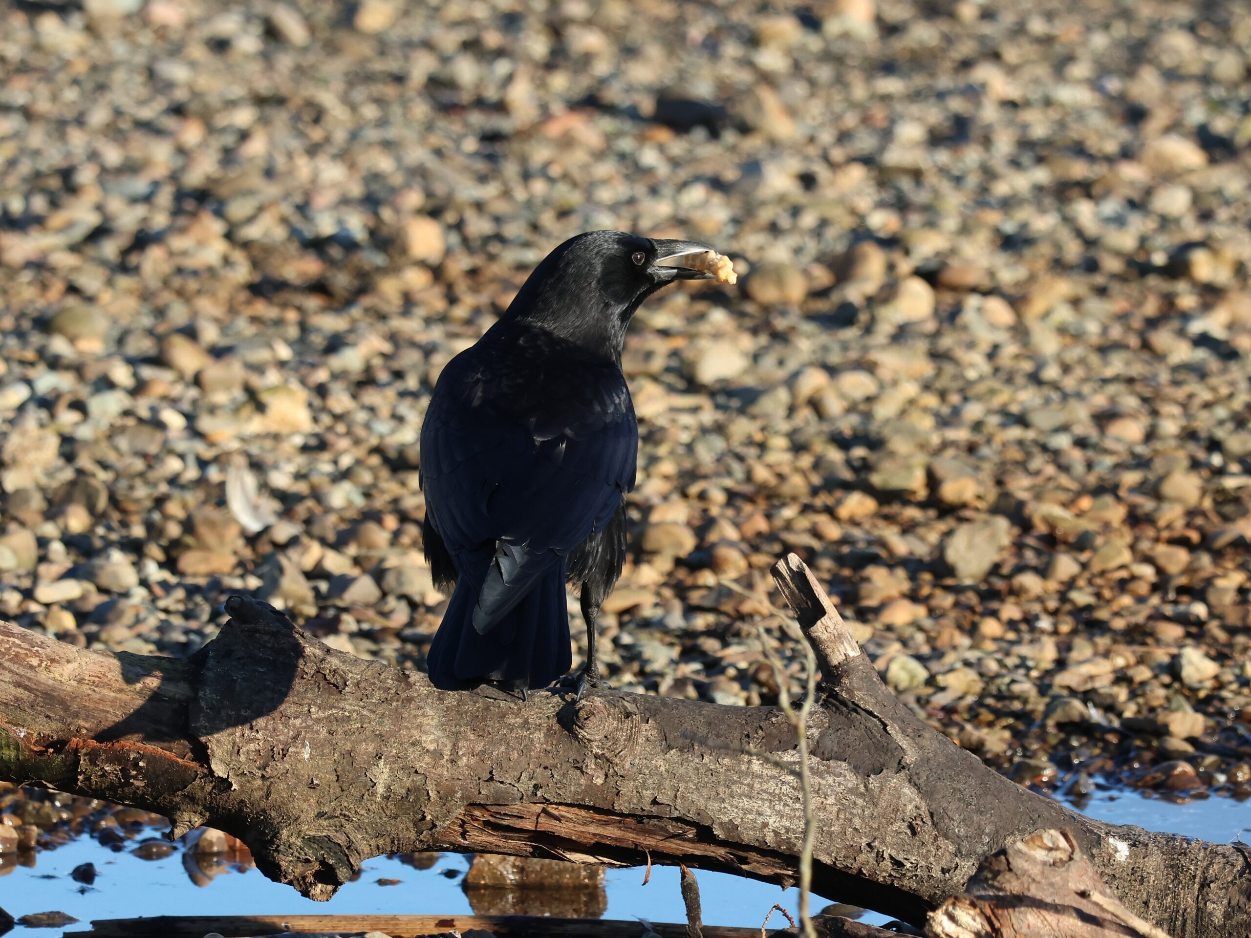 As for the (well-fed) birds, there were most of the usual gang, along with more Buffleheads, who obligingly came up close, allowing for some great shots of their fuzzy, iridescent heads. Perhaps distracted by food, I observed little drama, though one crow had what appeared to be a generous chunk of pastry in its beak that was being coveted by others.