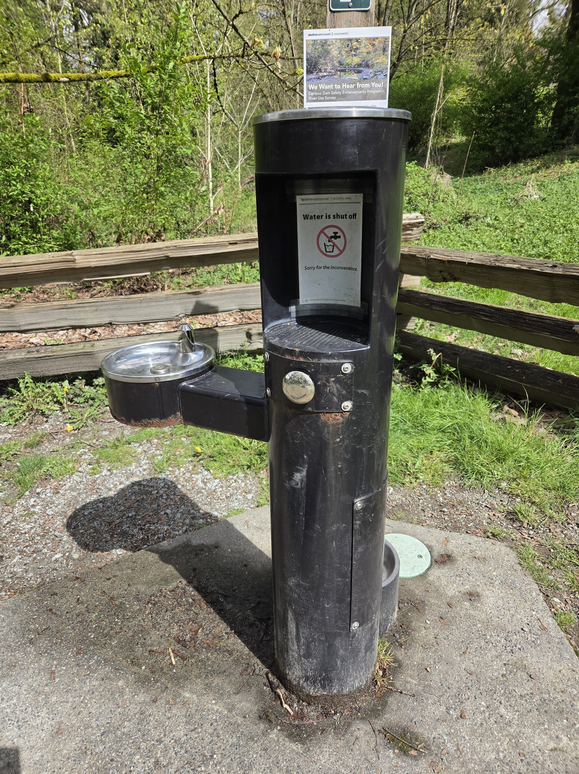 The stretch of trail between the rowing pavilion parking lot and sports fields is getting increasingly flooded and in several spots has water more or less permanently pouring across it. I am hoping it gets resurfaced soon.™.