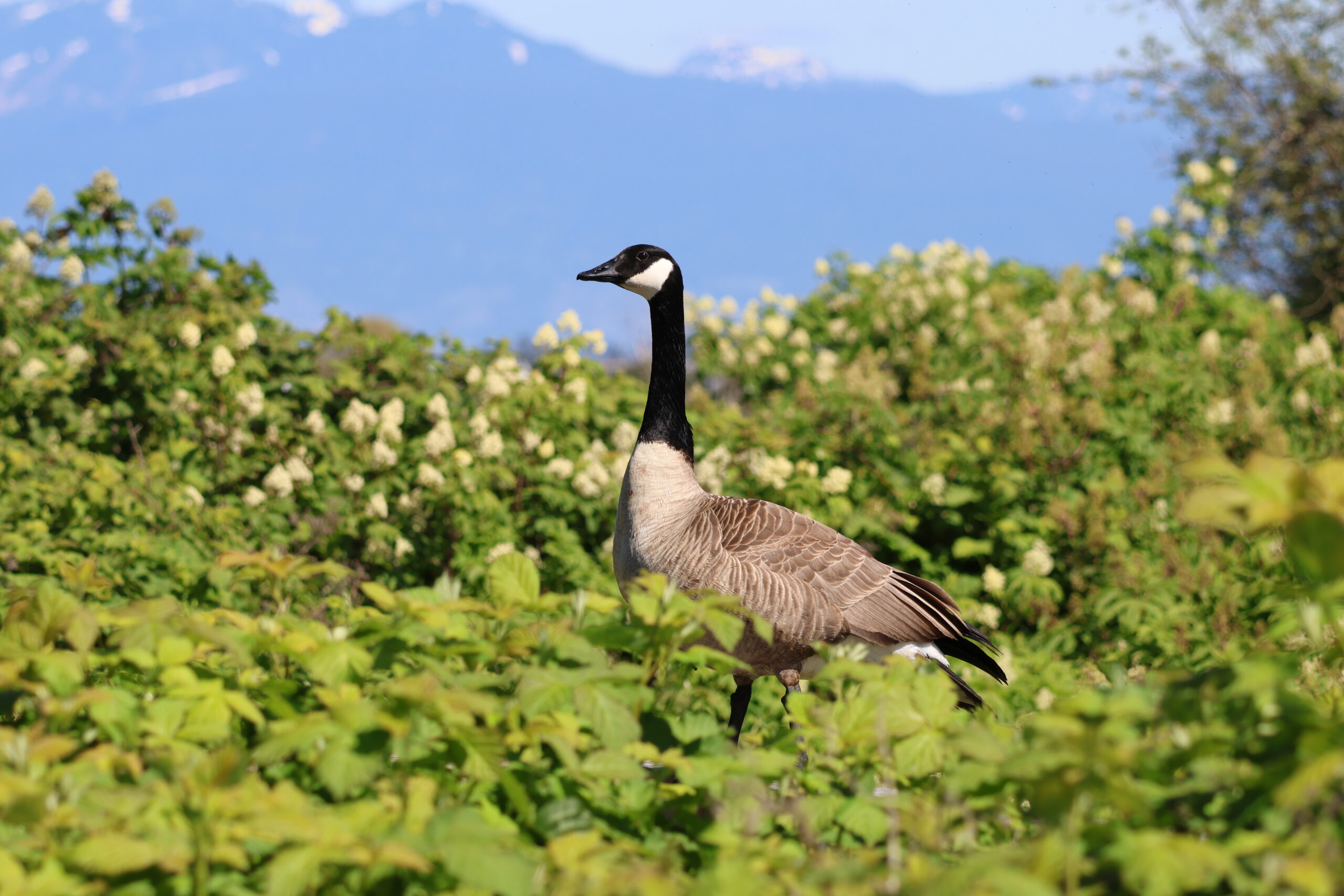 As it turned out, the Serpentine River was also probably the lowest we’ve ever seen and the overall number of birds was relatively small, though we did get some decent variety, with an eagle in a tree near the start, a few herons, a cormorant and a Canada Goose nesting on what would normally be a small island but is currently a hill surrounded by a lot of mud. I’m sure the future goose babbies will be safe, regardless.