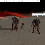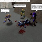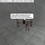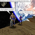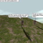 Fun fact: All of the shots were done using members of QB or friends, there was no machinima involved. I wrote a script for each episode, did storyboards, then organized all of the “actors” using voice chat (Roger Wilco).