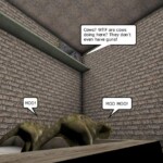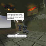 Sadly this episode was never finished. In fact, I started several versions of this episode–this is the one that got the furthest. The opening panel teases shenanigans in Medal of Honor: Allied Assault but no screenshots were ever actually taken in that game for the comic.