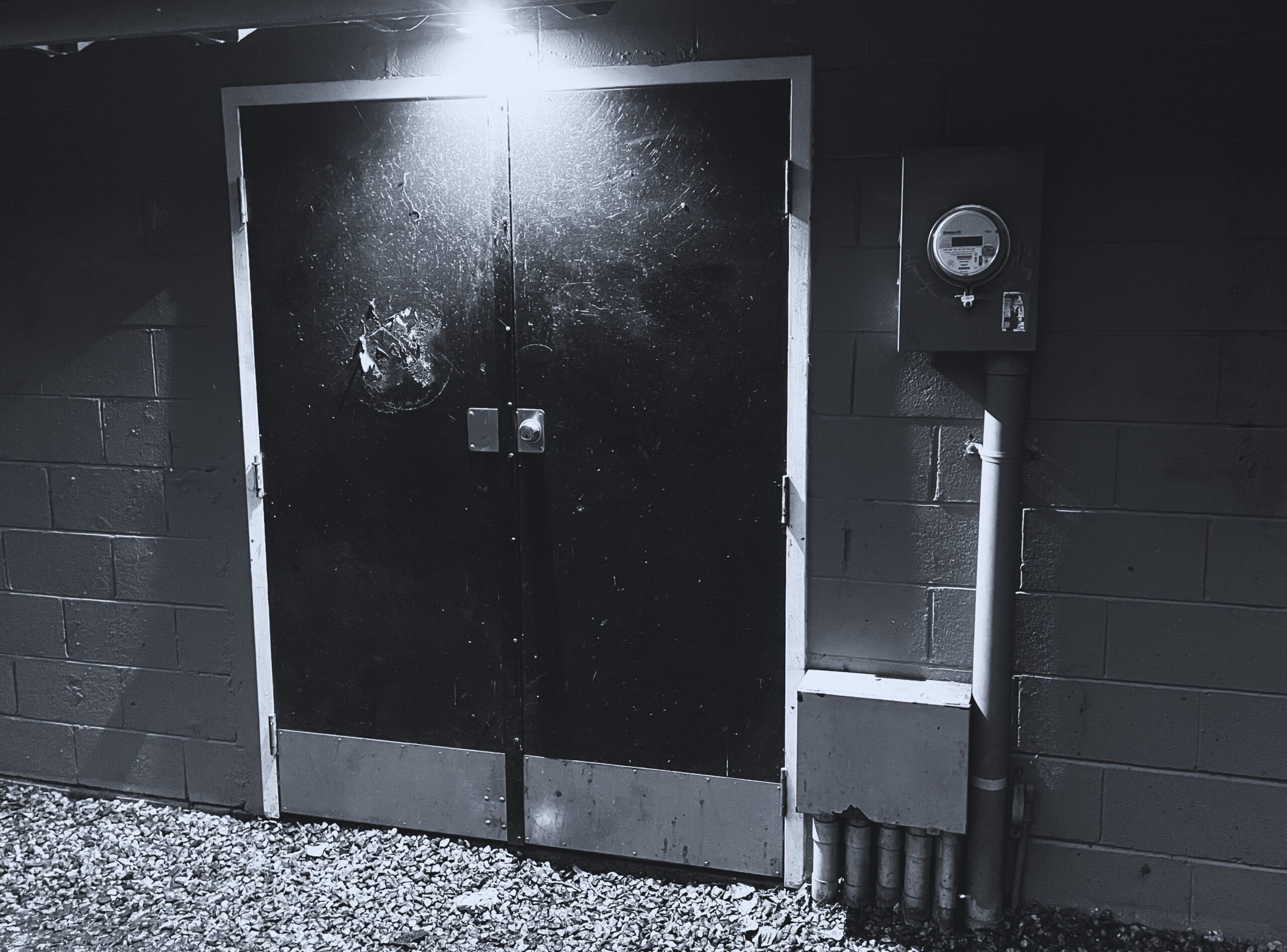 But is it art? Doors edition January 30, 2026 Not the band, an actual pair of doors. Specifically, the doors for the storage in Lower Hume Park, which I have post-processed into some black and white something: Share this post on social media.