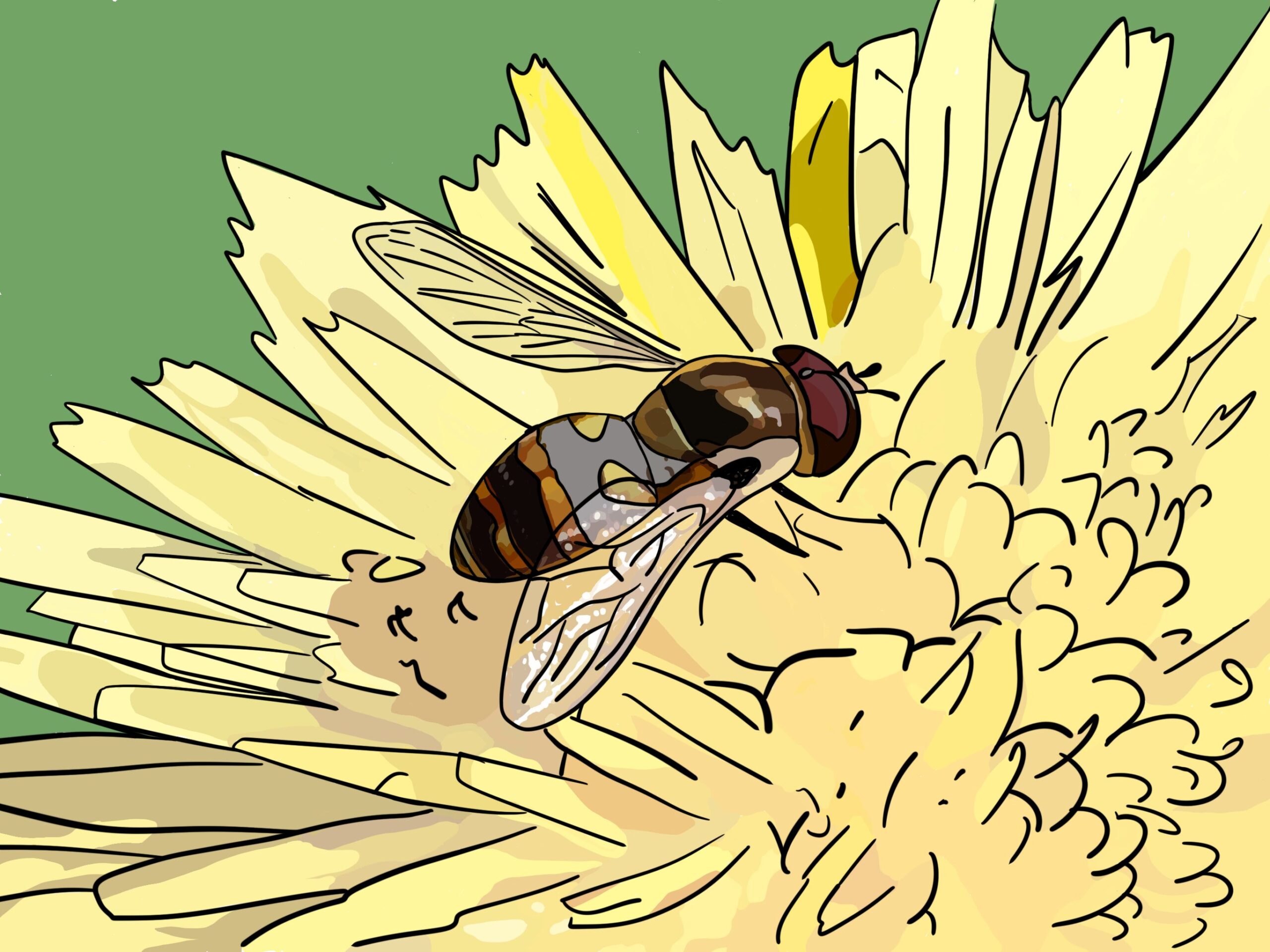 I decided one day to do a doodle of a hover fly I photographed on a flower instead of a bird, as I normally do.