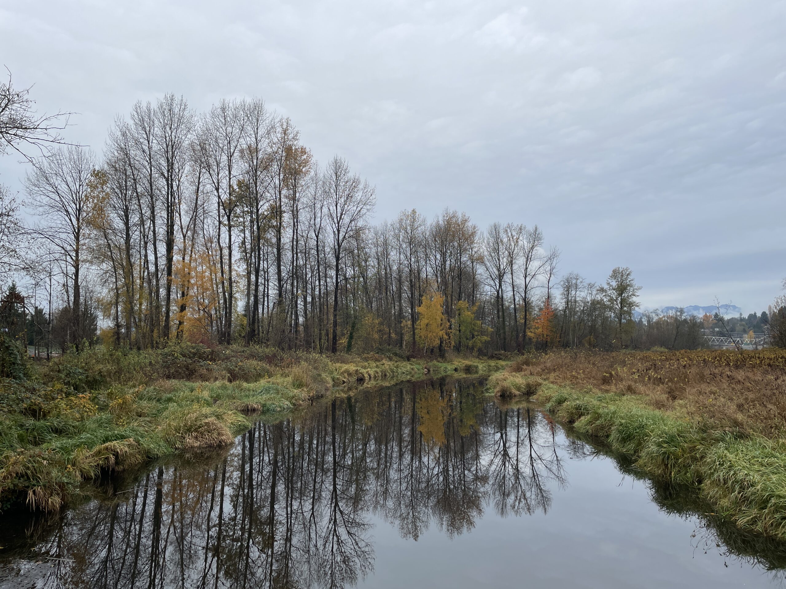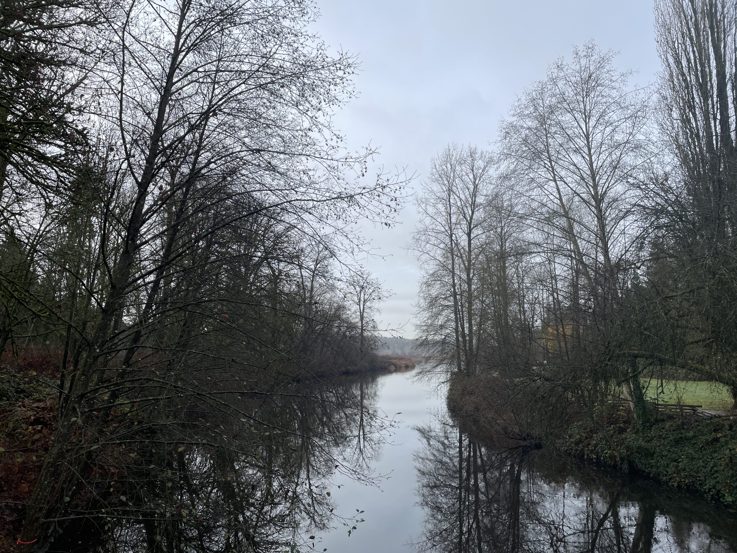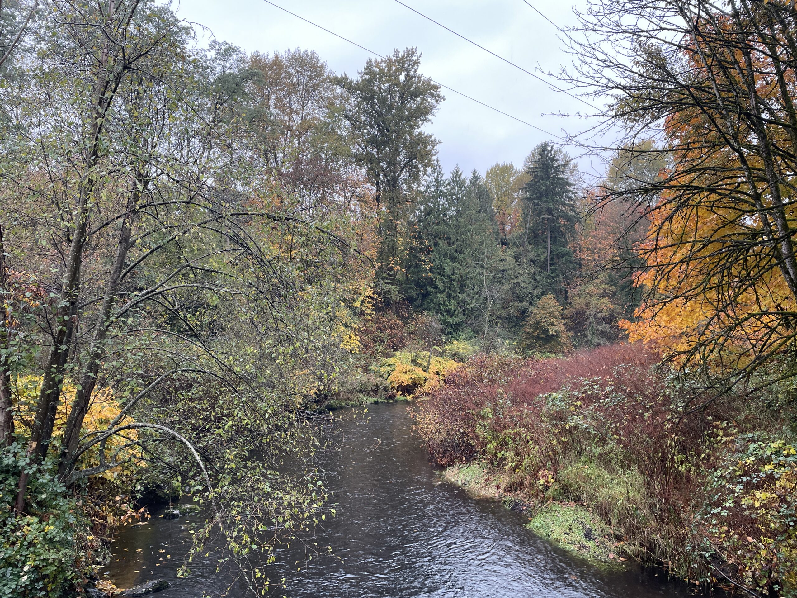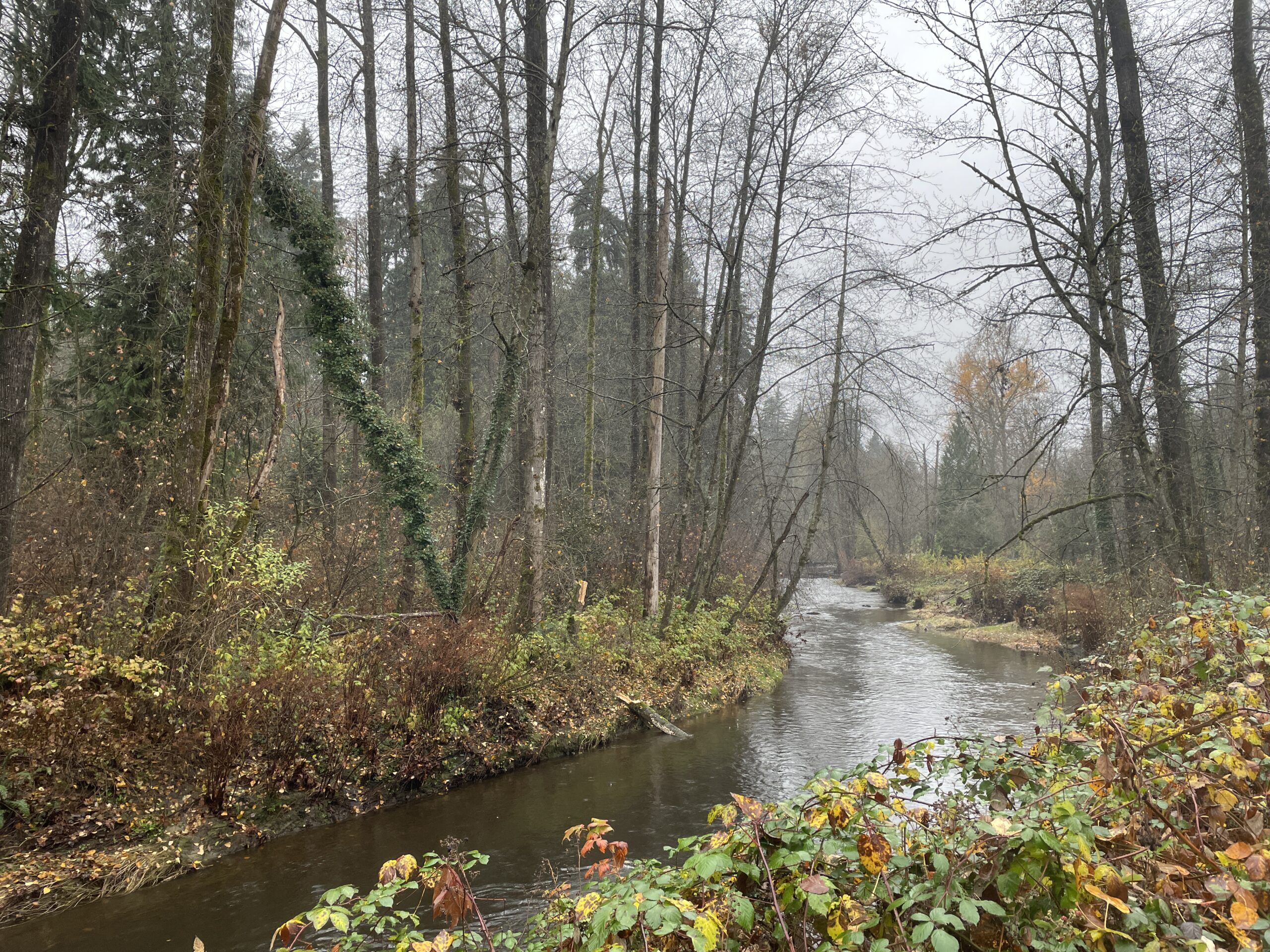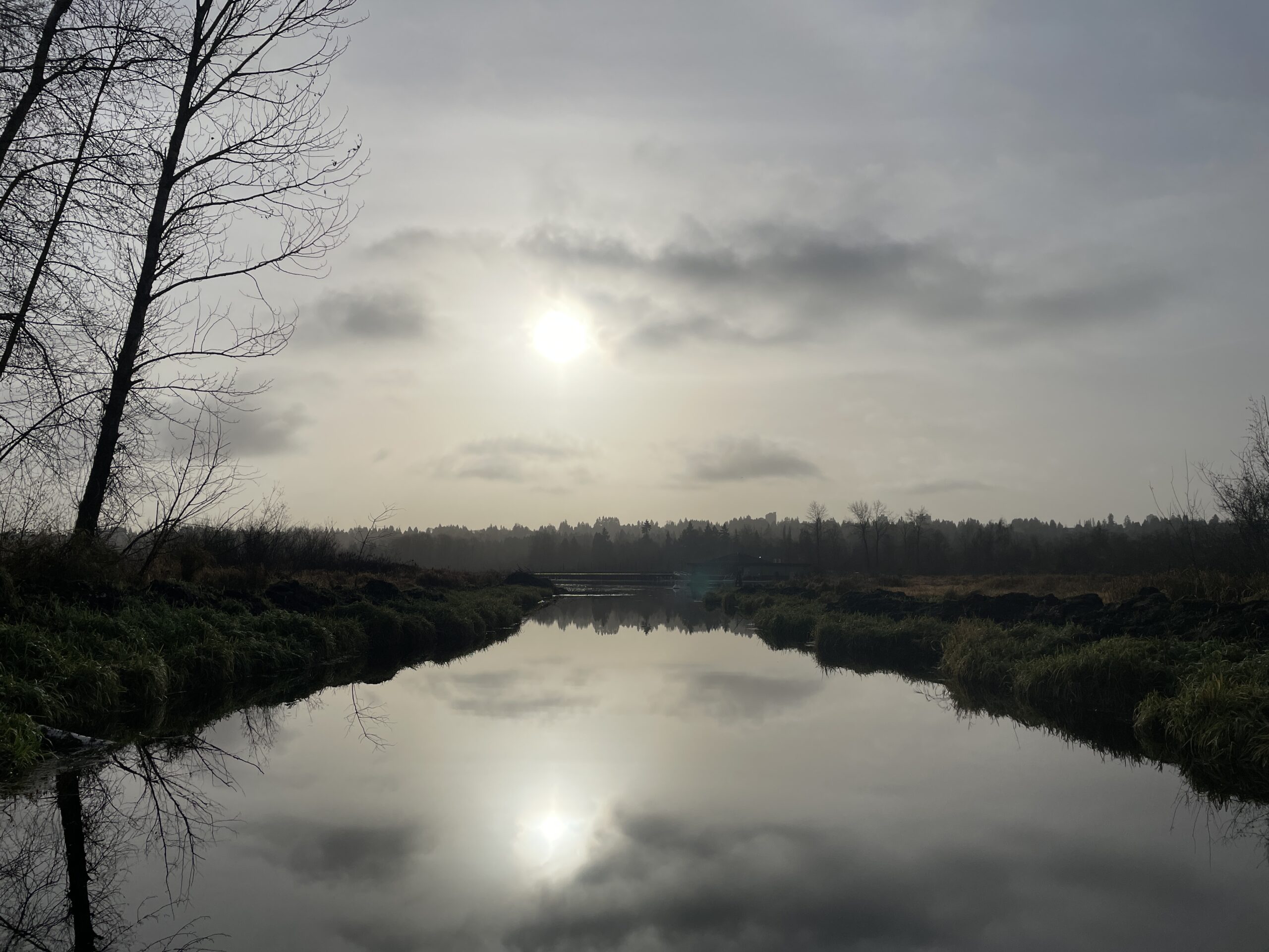 As mentioned, conditions were relatively mild. I probably only needed two layers, but three did not prove to be uncomfortable. The trail was generally in good shape, though the branches (and twigs) were indeed out, scattered all over the place. I guess yesterday’s storm had something to do with the debris. I finished the run and was perfectly dry, then had to face Puddle Town by the sports fields and ending up spraying mud up one leg and generally getting my feet quite wet, because the puddles are too big to avoid and the edges are all soft and murky. I will be writing to Metro Vancouver, because I’ve been running here for 14 years and they have never addressed the regular flooding on this section of trail.