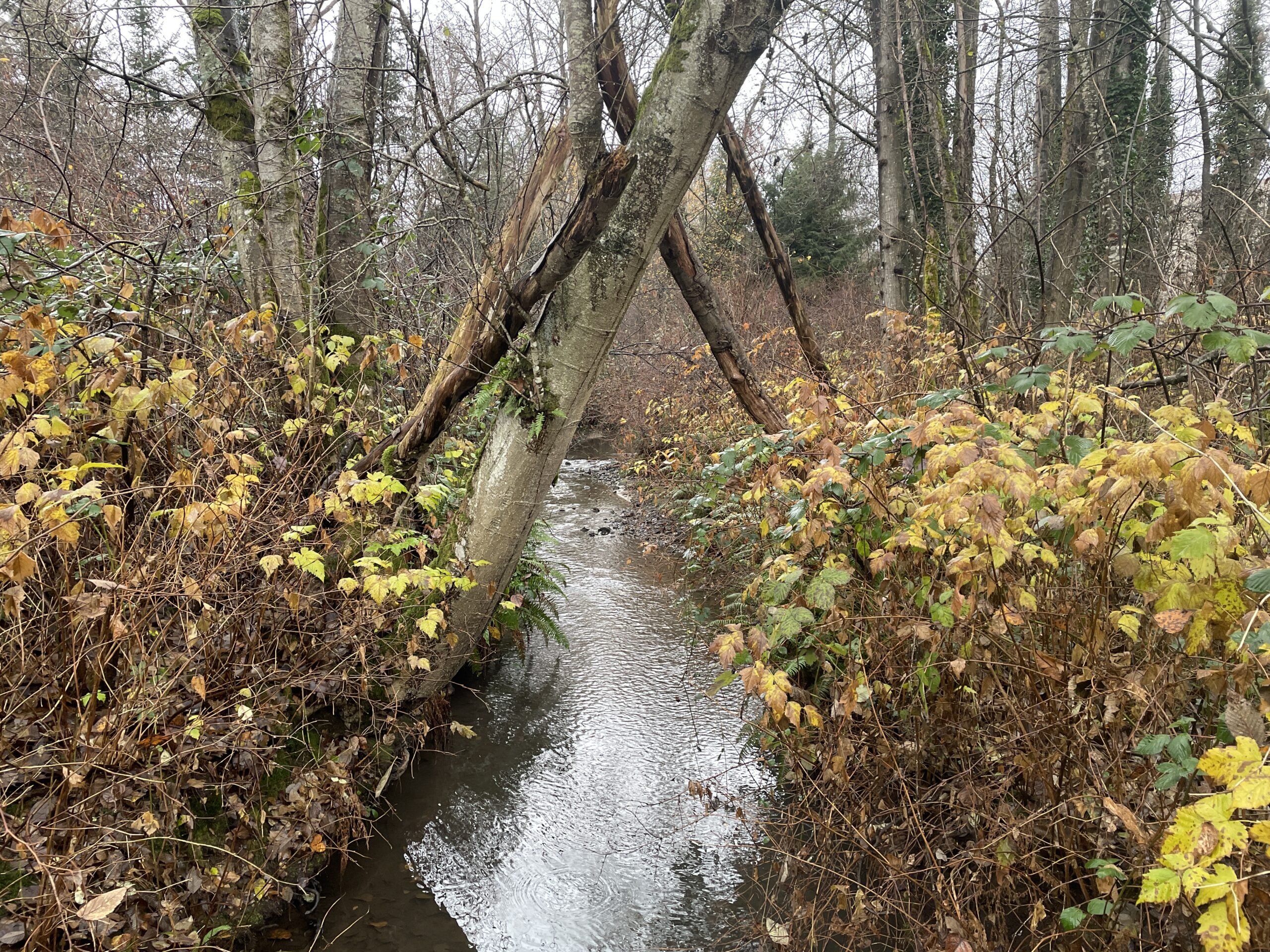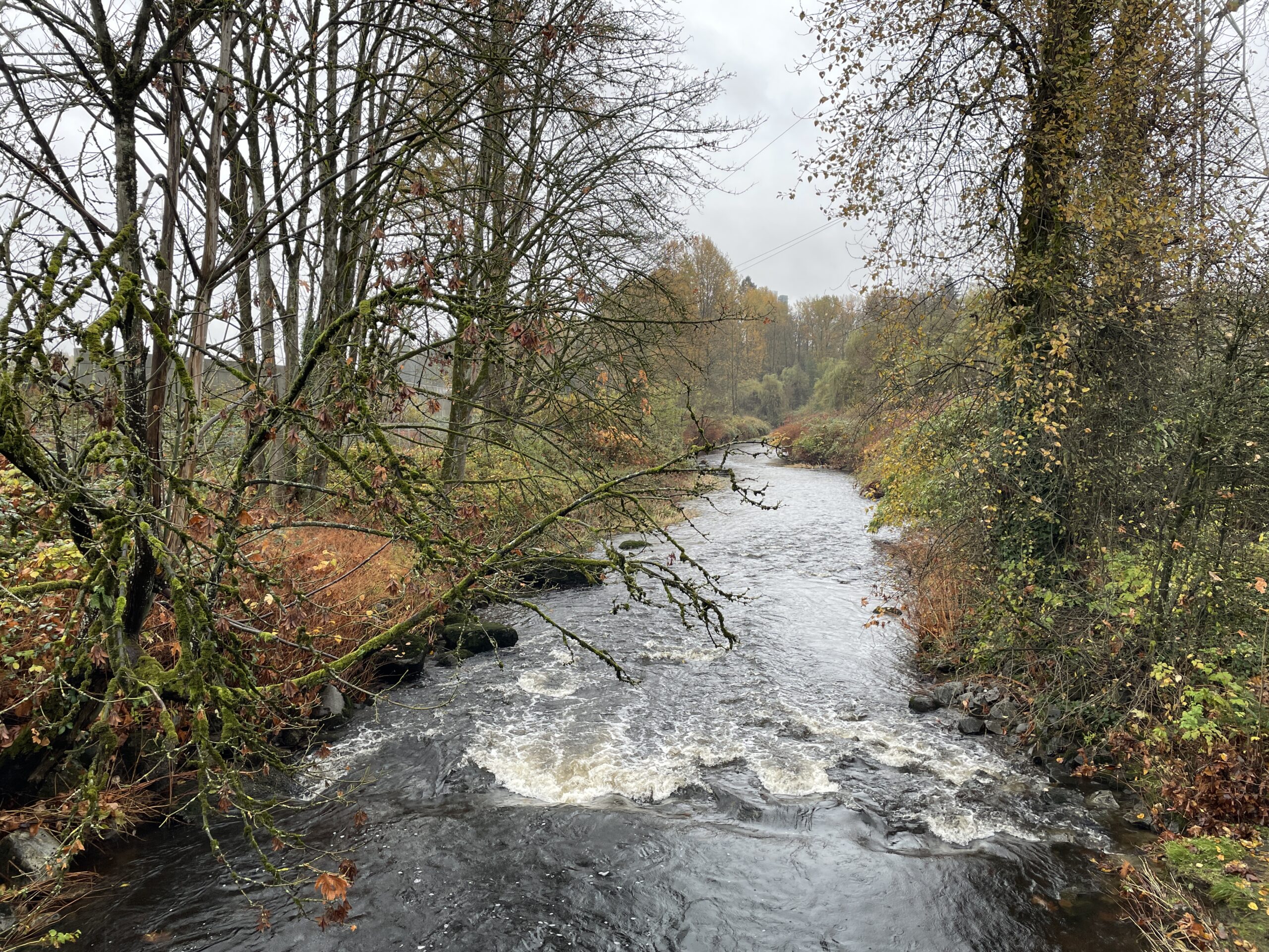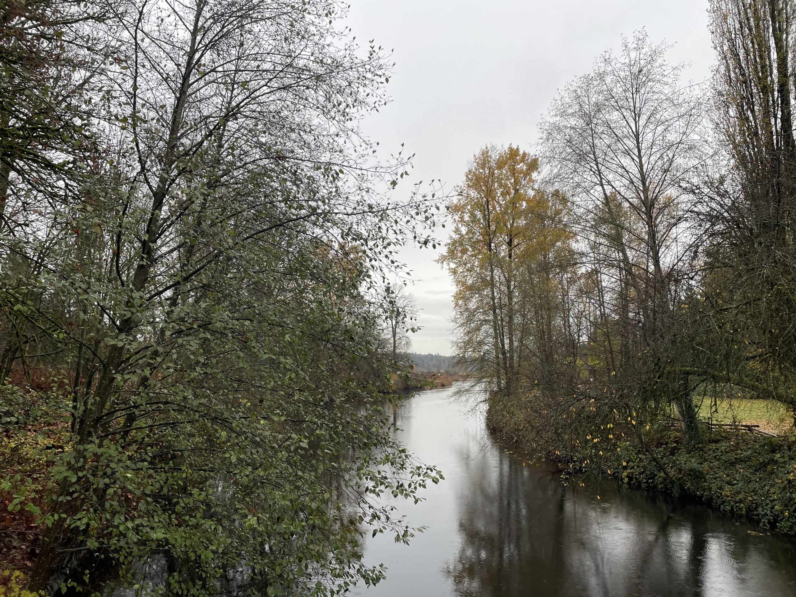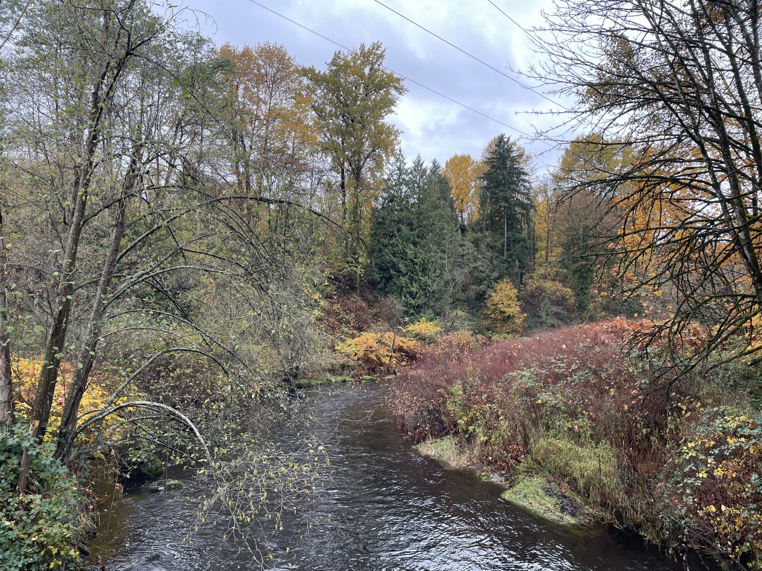 As mentioned, conditions were relatively mild. I probably only needed two layers, but three did not prove to be uncomfortable. The trail was generally in good shape, though the branches (and twigs) were indeed out, scattered all over the place. I guess yesterday’s storm had something to do with the debris. I finished the run and was perfectly dry, then had to face Puddle Town by the sports fields and ending up spraying mud up one leg and generally getting my feet quite wet, because the puddles are too big to avoid and the edges are all soft and murky. I will be writing to Metro Vancouver, because I’ve been running here for 14 years and they have never addressed the regular flooding on this section of trail.