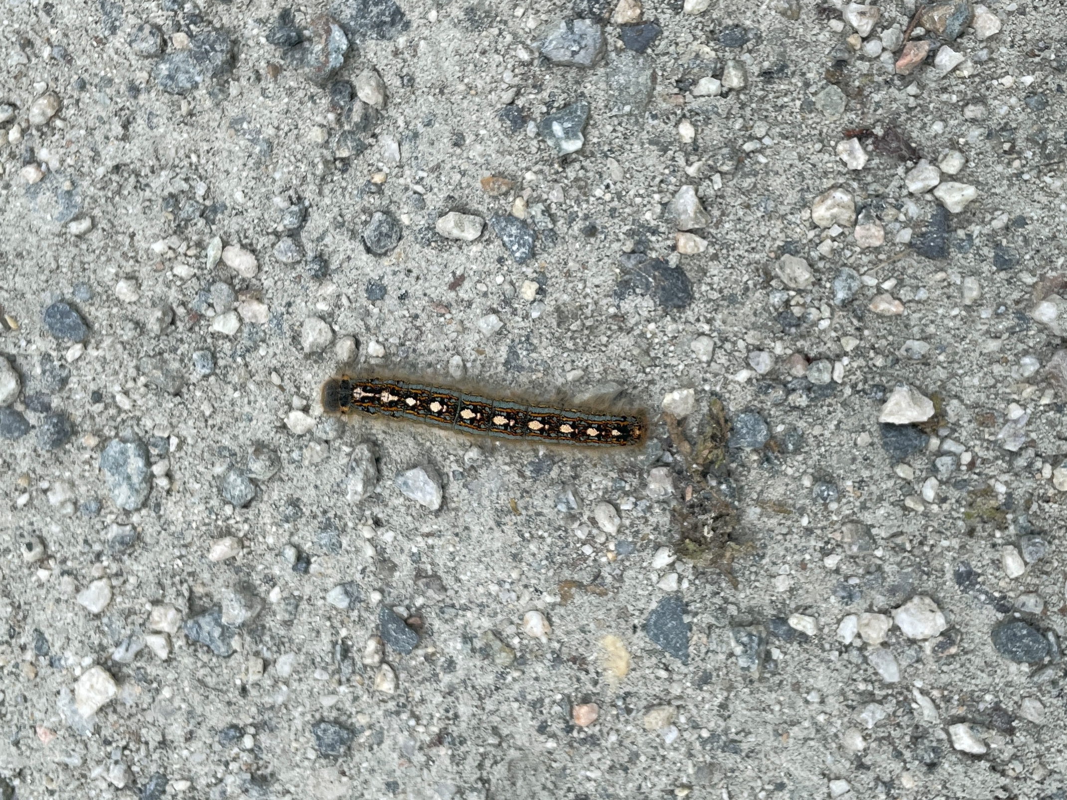 EDIT: Nic is less lazy than I am and has identified this as a forest tent caterpillar. It grows into a forest tent caterpillar moth, which is an extremely on-the-nose name.